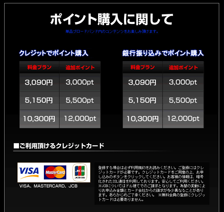 【定額サービス】と【単品購入】があり、決済方法は【クレジットカード(VISA・Master Card・JCB)】と【銀行振込み】が選べます。
